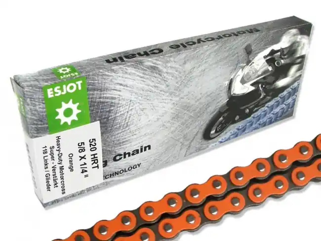 ESJOT Motorradkette in Orange mit 118 Gliedern für Enduro-, Motocross- und Straßenmotorräder