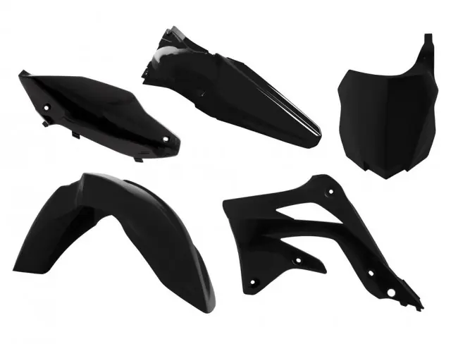 Racetech Plastik Kit in Schwarz, passend bei Kawasaki KXF 450 2013-2015.