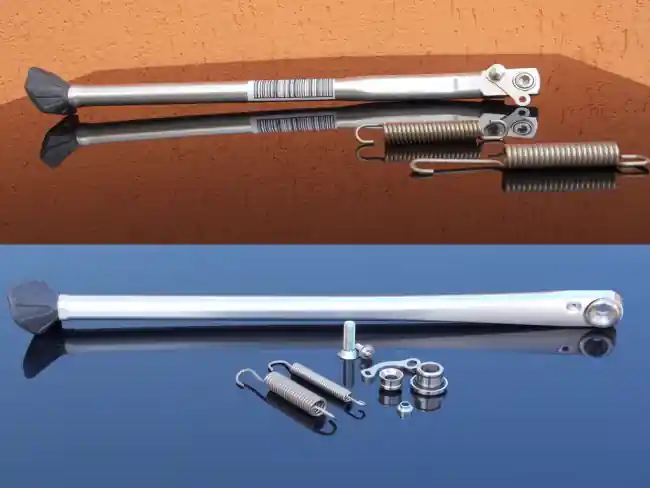 Seitenständer in Silber mit allen Anbauteilen passend bei KTM EXC, Husaberg Enduro und Husqvarna FE, TE Modellen Baujahr 2008-2016.