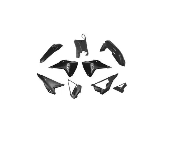 Racetech Revolution Plastik Kit in Schwarz, passend bei Honda CRF 250R und 450R ab 2025 bestehend aus Kotflügel vorn & hinten, Kühler-Spoiler, Seitenteile und Nummertafel.