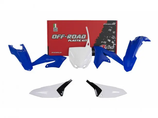 Plastik Kit in OEM Farben, bestehend aus Kotflügel vorn & hinten, Kühler-Spoiler, Seitenteile und Startnummerntafel.