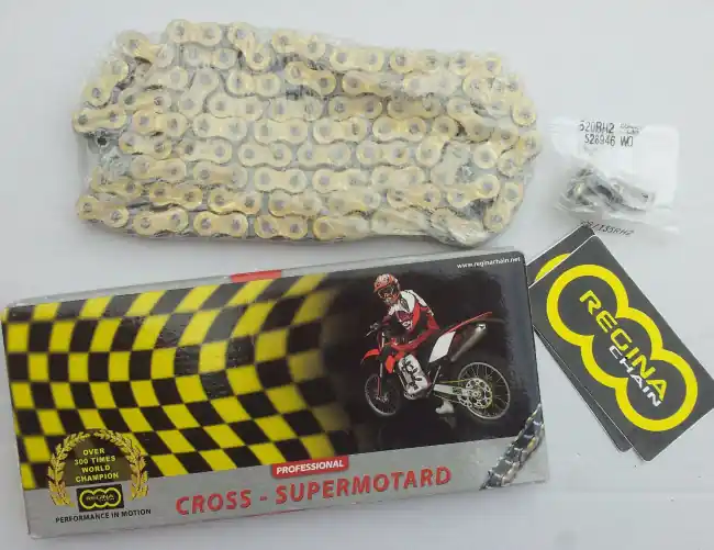 Die Regina RH 2 Kette ist bestens geeignet für den Einsatz auf Motorrädern von 125 bis 500cm. Mit einer Zugfestigkeit von 3410 kg garantiert diese eine lange Lebensdauer bei besten Preis-Leistungsverhältnis.