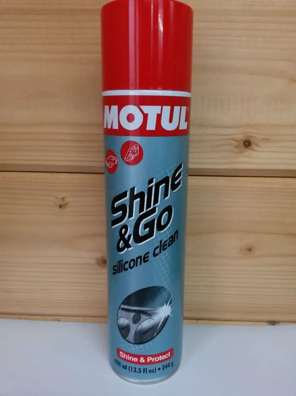 Das Motul Shine & Go ist eine Hochglanztiefenpflege auf Silikonbasis für alle Kunststoffteile.