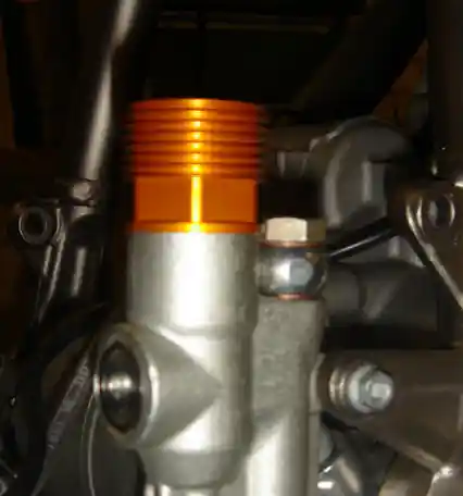 Der Deckel für den Fußbremszylinder hat ein vergrößertes Volumen und zusätzliche Kühlrippen. So wird die Erhitzung der Bremsflüssigkeit minimiert und sorgt für beste Bremswirkung auch an heißen Tagen.