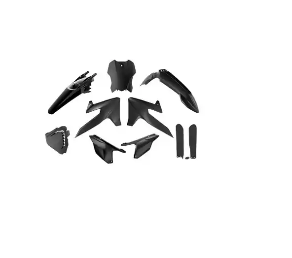 Enthalten sind Kotflügel vorne und hinten, Nummerntafel, Seitenteile links und rechts, Gabelprotektoren und Luftfilter-Abdeckung.