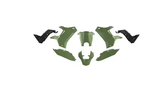 Es besteht aus zwei Kühlerverkleidungen, einer Tankabdeckung, zwei mittleren Rahmenabdeckungen, zwei hinteren Nummerntafeln und einem hinteren Kotflügel. Mit den Originalschrauben ist es Plug-and-Play-fähig und einfach zu montieren!