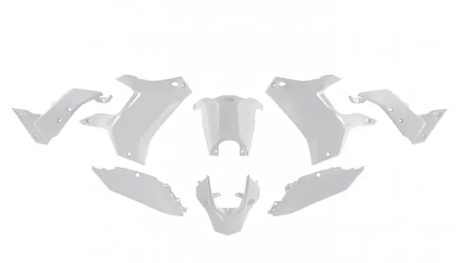 neu gestaltet aus flexiblem, kratzfestem und glänzendem, umweltfreundlichem Polypropylen, verleiht diesem legendären Abenteuermotorrad den letzten Schliff, ein komplettes Facelift, speziell für den Hard-Enduro-Einsatz