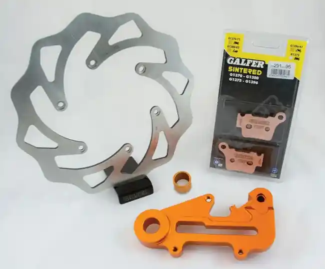 Galfer Wave Bremsscheibe inkl Belägen und Adapter für das Hinterrad passend bei allen KTM SX, EXC Modellen ab 125ccm ab Baujahr 1992 – Heute, Husqvarna Modellen ab 2014 und GasGas Modellen ab 2021-