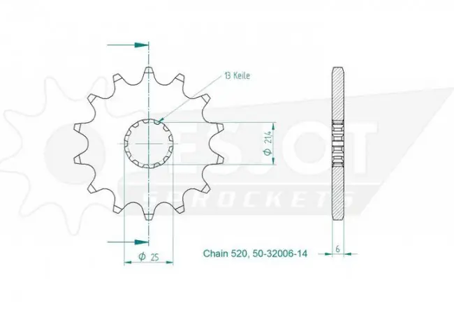 Esjot Motorritzel mit 13 oder 14 Zähnen, passend bei Kawasaki KXF 450 ab 2006