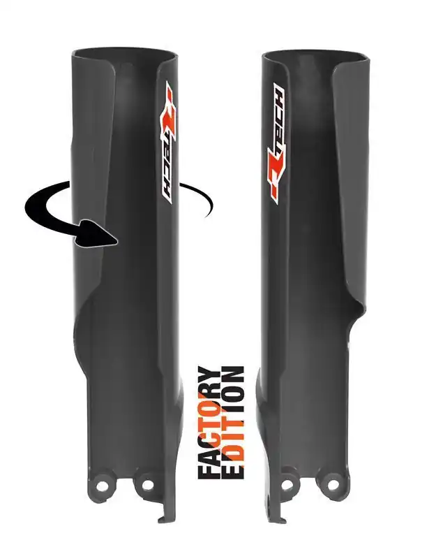 Racetech Factory Gabelschützer in Schwarz, passend bei KTM SX/SXF Modellen ab Baujahr 2023 und EXC Modellen ab 2024-