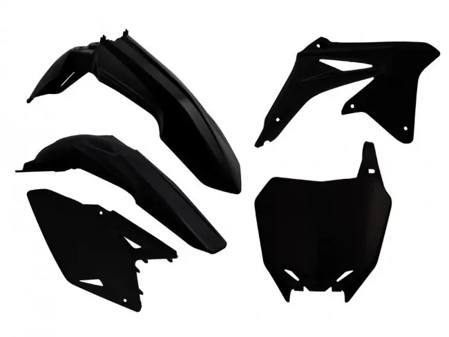 Racetech Plastik Kit in Schwarz, passend bei Suzuki RMZ 450 2008-2017, bestehend aus Kotflügel vorn & hinten, Kühler-Spoiler, Seitenteile und Nummertafel.