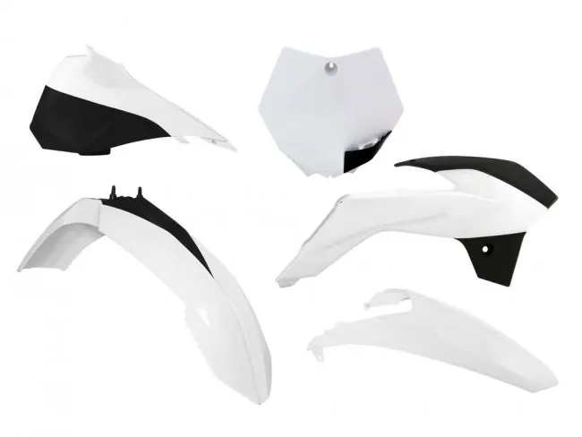 Racetech Plastik Kit in Weiß, für KTM SX 85 2013-2017. bestehend aus Kotflügel vorn & hinten, Kühler-Spoiler, Luftfilterkastendeckel Links und Nummertafel.