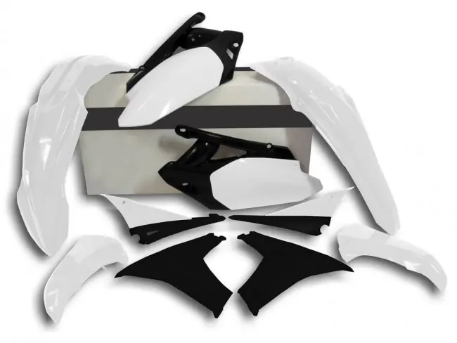 Plastik Kit in Weiß, passend bei Yamaha YZF 450 2010-2013, bestehend aus Kotflügel vorn & hinten, Kühler-Spoiler, Startnummerntafel und Seitenteile.