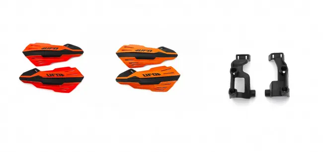 UFO Handschützer wie abgebildet zur Montage an der Brems- und Kupplungsarmatur, passend bei KTM Motocross und Enduro Modellen ab 2014-