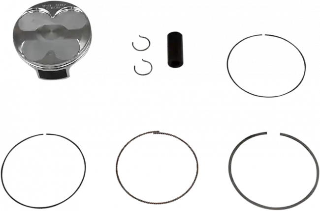 Alle Kolben sind wärmebehandelt im T-5 Härtungs- und Wärmebehandlungszyklus. Die Kolbenhemden sind mit High-Tech-Molybdän-Disulphit-Beschichtung für schnelleres Einfahren und eine längere Lebensdauer.