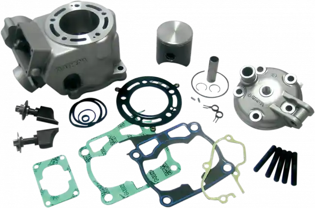 Zylinder-Kolbensatz bestehend aus einem mit Silizium-Karbid beschichteten Zylinder, einem abnehmbaren Bronze-Zylinderkopf mit Dom, einem glatten Schmiedekolben, einem Satz harteloxierter Auslassventile und einem Dichtungssatz.